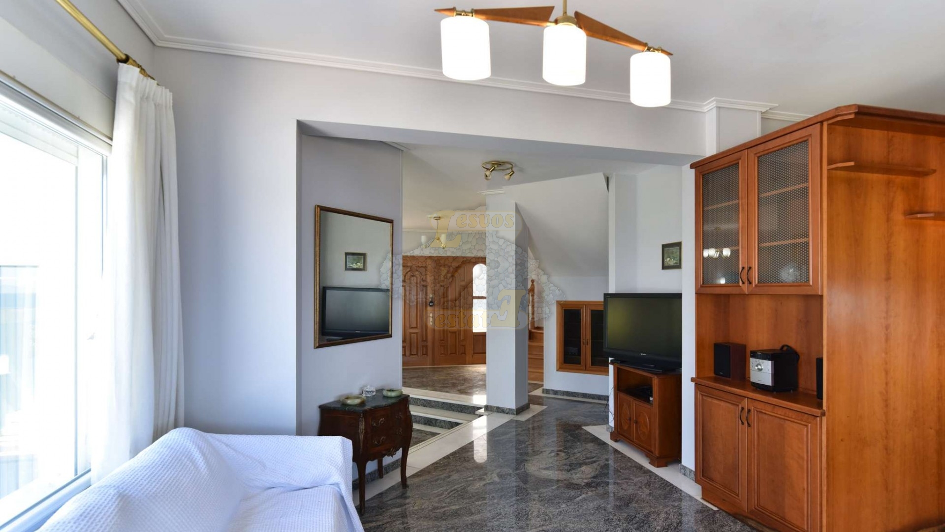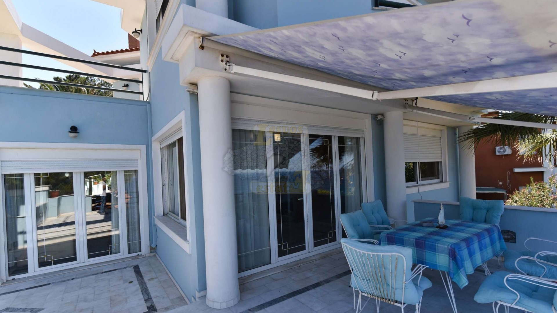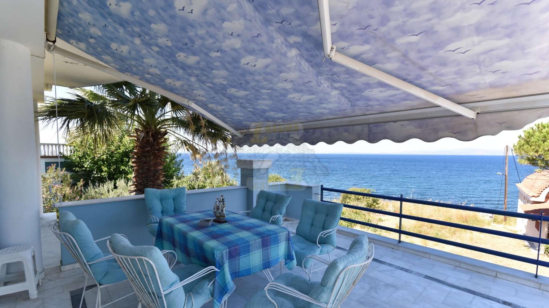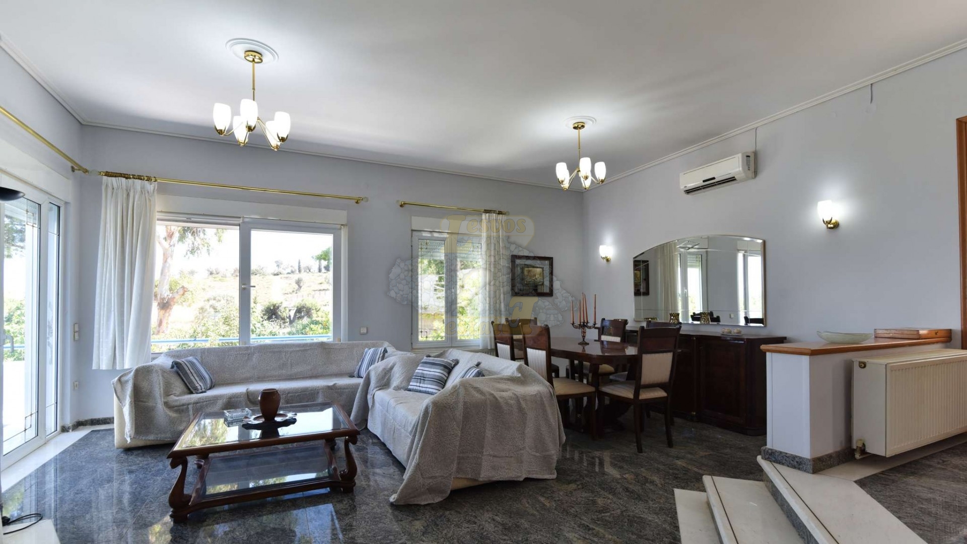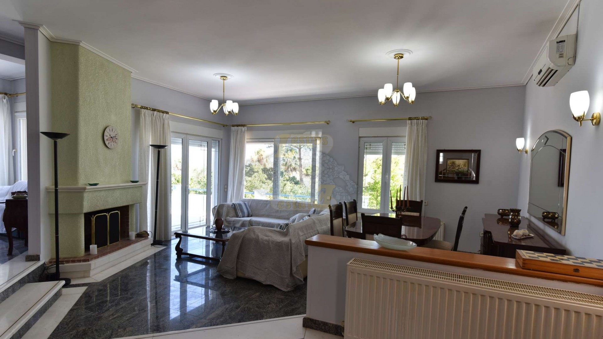 Σε ένα ψηλό σημείο, με απίστευτη θέα στη θάλασσα, βρίσκεται αυτή η μεζονέτα μέσα σε ένα οικόπεδο συνολικού εμβαδόν 4.131,94 τ.μ. Αποτελείται από ένα υπόγειο 137,83 τετραγωνικών μέτρων, ένα ισόγειο 95,91 τ.μ. και έναν όροφο 75,78 τετραγωνικών μέτρων. Το εμβαδόν του ημιυπαίθριου χώρου είναι 3,94 τ.μ. Στο ισόγειο υπάρχει ένα μεγάλο σαλόνι με τραπεζαρία και τζάκι, ένα μεγάλο χωλ, μεγάλη κουζίνα και ένα WC. Υπάρχει εσωτερική ξύλινη σκάλα που οδηγεί στον πρώτο όροφο, όπου υπάρχει ένα WC και 3 μεγάλες κρεβατοκάμαρες με μπαλκόνια που βλέπουν θάλασσα, η μια από αυτές έχει δικό της μπάνιο.