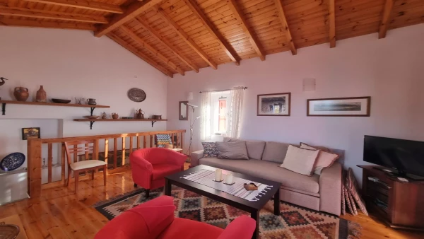 Μία μοναδική μονοκατοικία με απέραντη θέα στο Αιγαίο Πέλαγος! Στο ισόγειο βρίσκεται η κουζίνα, μία τραπεζαρία, ένα μπάνιο, και μία μεγάλη βεράντα. Στην μπροστινή όψη του σπιτιού βρίσκεται το υπνοδωμάτιο του σπιτιού, από όπου μπορείτε να χαλαρώσετε και ακόμα και ξαπλωμένοι να απολαύσετε την απέραντη θέα! Στον πάνω όροφο υπάρχει ένα καθιστικό, το οποίο μπορεί να μετατραπεί σε μία σοφίτα, στην περίπτωση που χρειαστείτε και 2ο υπνοδωμάτιο. Το ισόγειο είναι 54,86 τετραγωνικά μέτα και ο πρώτος όροφος είναι 34,64 τετραγωνικά μέτρα.