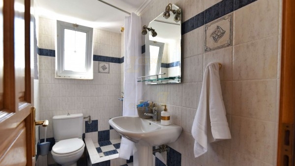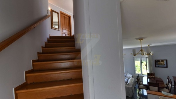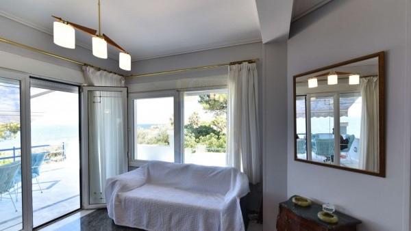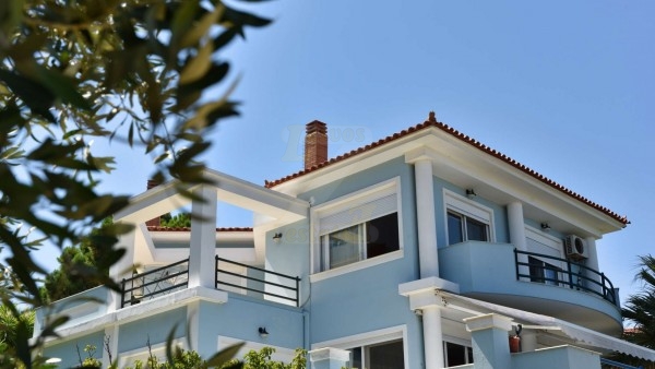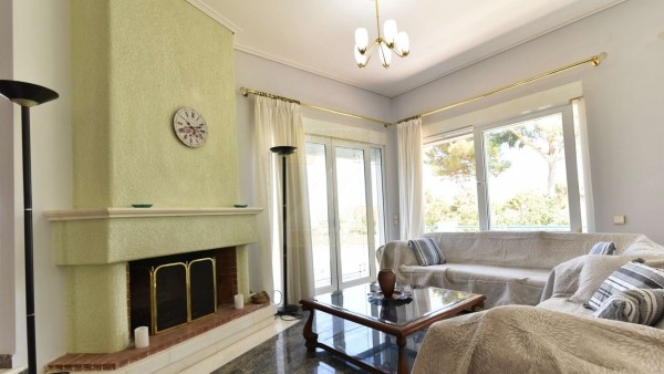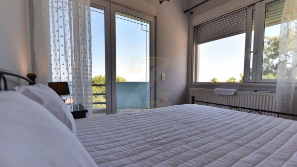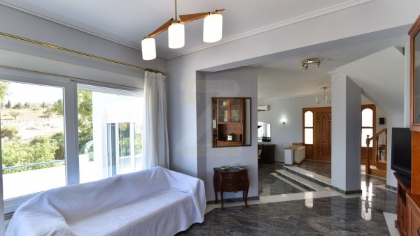 Σε ένα ψηλό σημείο, με απίστευτη θέα στη θάλασσα, βρίσκεται αυτή η μεζονέτα μέσα σε ένα οικόπεδο συνολικού εμβαδόν 4.131,94 τ.μ. Αποτελείται από ένα υπόγειο 137,83 τετραγωνικών μέτρων, ένα ισόγειο 95,91 τ.μ. και έναν όροφο 75,78 τετραγωνικών μέτρων. Το εμβαδόν του ημιυπαίθριου χώρου είναι 3,94 τ.μ. Στο ισόγειο υπάρχει ένα μεγάλο σαλόνι με τραπεζαρία και τζάκι, ένα μεγάλο χωλ, μεγάλη κουζίνα και ένα WC. Υπάρχει εσωτερική ξύλινη σκάλα που οδηγεί στον πρώτο όροφο, όπου υπάρχει ένα WC και 3 μεγάλες κρεβατοκάμαρες με μπαλκόνια που βλέπουν θάλασσα, η μια από αυτές έχει δικό της μπάνιο.