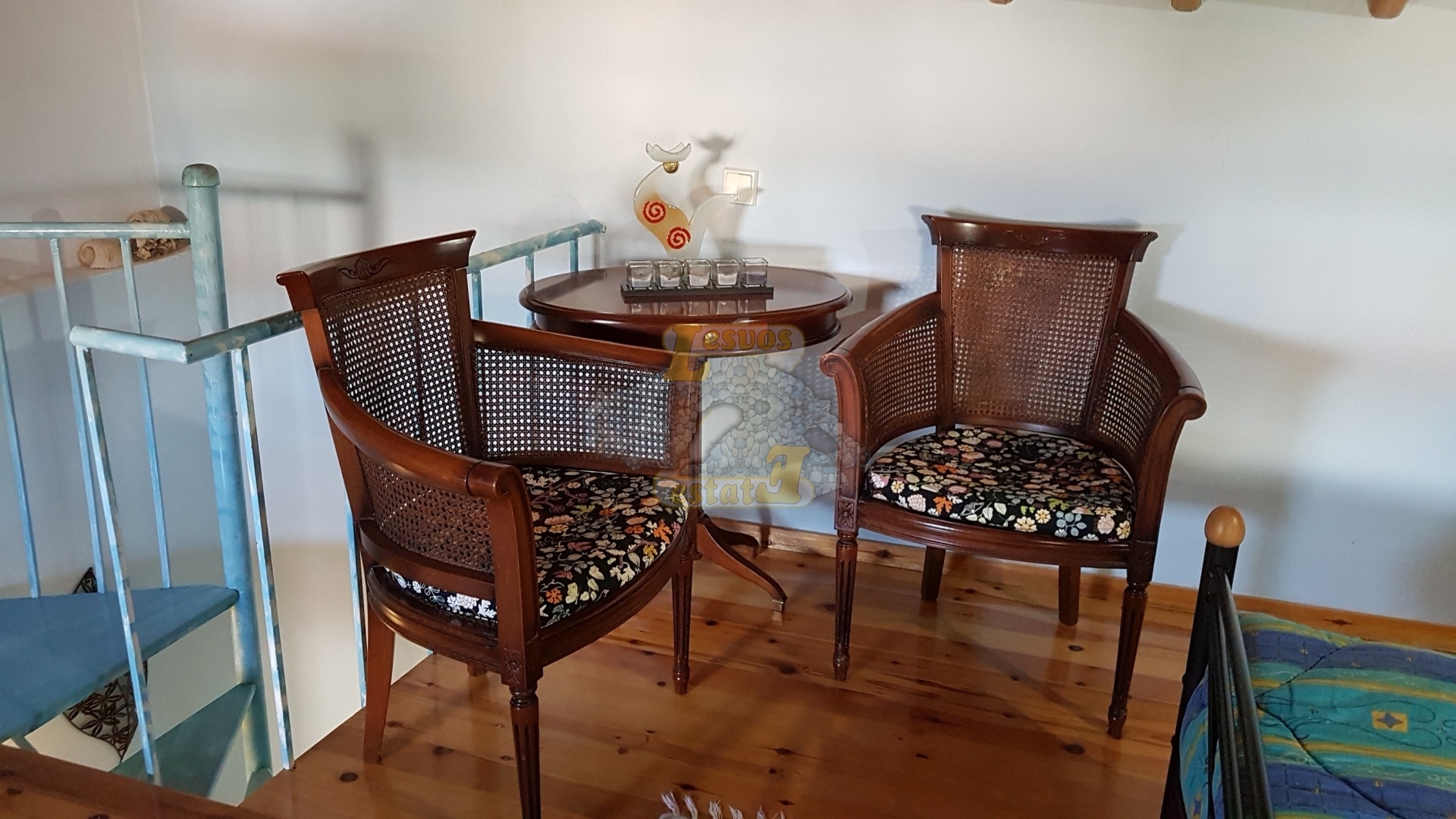 Αυτό το τριώροφο σπιτάκι, με εμβαδόν 75 τετραγωνικά μέτρα και με την υπέροχη θέα στο Αιγαίο Πέλαγος και στο χωριό του Πλωμαρίου, είναι ότι πρέπει για ένα ζευγάρι. Στο ισόγειο βρίσκεται η κουζίνα και το μπάνιο του, στον πρώτο όροφο είναι το σαλόνι και μέσω μιας εσωτερικής σιδερένιας σκάλας οδηγείστε στον ψηλότερο όροφο, ο οποίος είναι σοφίτα, και φιλοξενεί μία ρομαντική κρεβατοκάμαρα. Έχει και μία μικρή, αλλά όμορφη αυλή και είναι εύκολα προσβάσιμο με το αυτοκίνητο. Ενοικιάζεται με τα έπιπλα και τον εξοπλισμό που φαίνεται στις φωτογραφίες.
