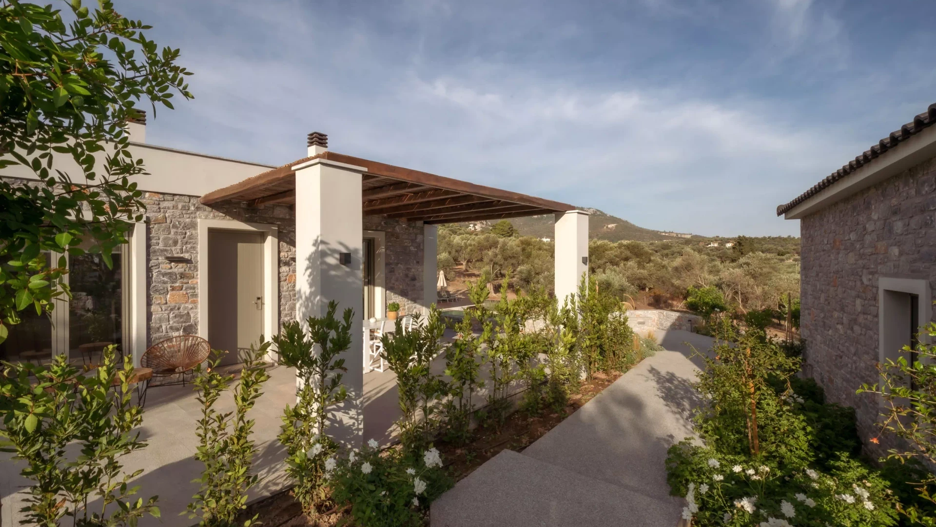 Μία ανάσα από την πρωτεύουσα του νησιού και δίπλα στο αεροδρόμιο βρίσκονται αυτές οι πανέμορφες κατοικίες. Πρόκειται για 4 αυτόνομες, πέτρινες βίλες των 50 τετραγωνικών μέτρων και μία των 100 τετραγωνικών μέτρων. Τα σπίτια είναι χτισμένα με φιλικά προς το περιβάλλον υλικά που συνδυάζουν την πέτρα με το ξύλο, χαρίζοντας μια διακριτική πολυτέλεια που συνδυάζει την παράδοση με τη σύγχρονη άνεση. Βρίσκονται μέσα σε κήπους γεμάτους βότανα και αρωματικά φυτά. Τόσο το εσωτερικό όσο και το εξωτερικό αυτών των κατοικιών έχουν κατασκευαστεί με τέτοιο τρόπο ώστε να αποπνέουν γαλήνη και ηρεμία.