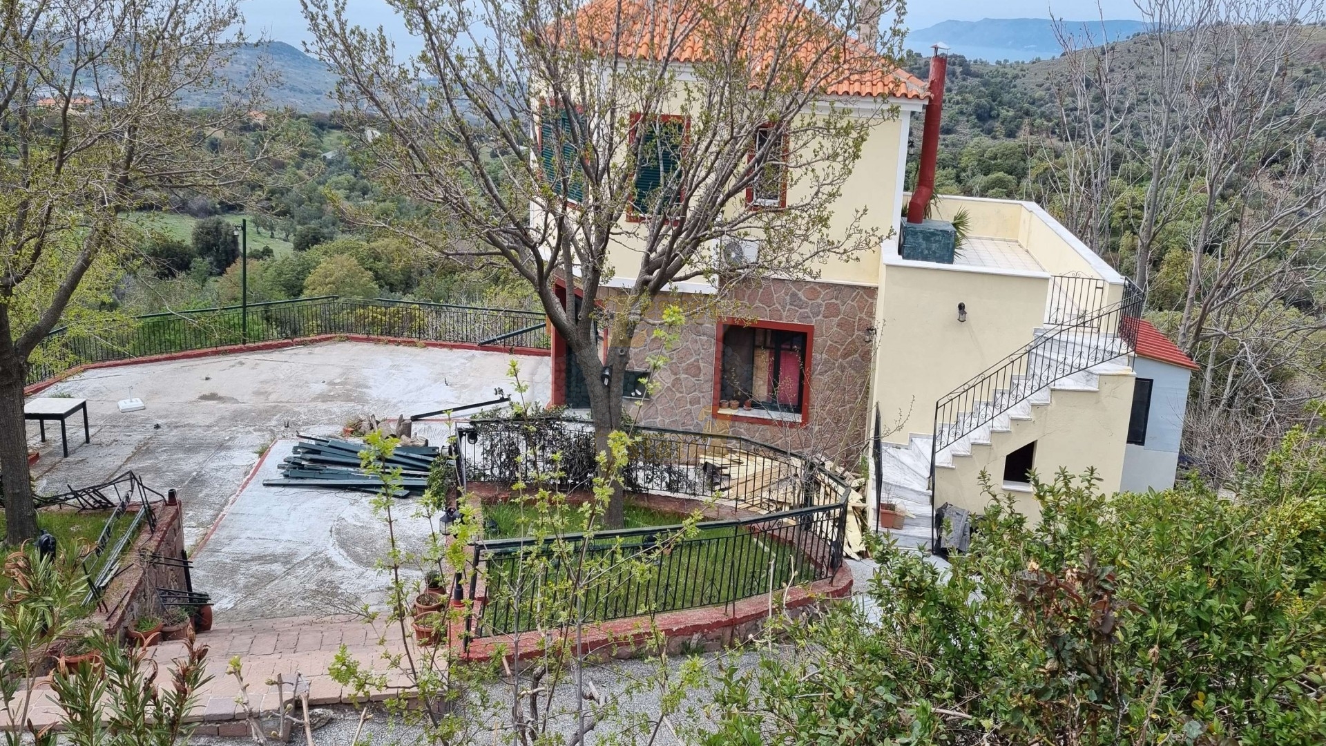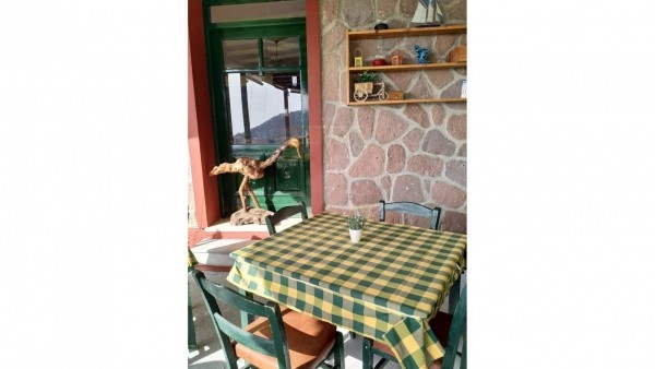 Έχει καταπληκτική θέα στα βουνά, ενώ στο βάθος φαίνεται το γαλάζιο του Αιγαίου. Ένας υπέροχα διαμορφωμένος χώρος με πολύ μεράκι, που χαρίζει γαλήνη και ηρεμία, ιδανικός για όλες τις εποχές του χρόνου. Τον χειμώνα ξεχυλίζει από ζεστασιά που προέρχεται τόσο από την πέτρινη διακόσμηση του, όσο και από το αναμμένο τζάκι και το καλοκαίρι στον άνετο χώρο του χαρίζει απλόχερα στον επισκέπτη την πανοραμική θέα και την ηρεμία της φύσης, όσο τα παιδιά χαίρονται αμέριμνα στην παιδική του χαρά.