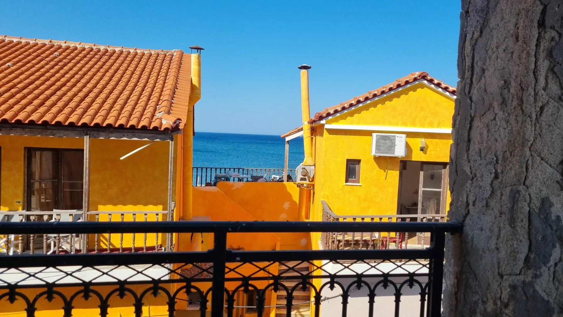 Βρίσκεται στο πιο κεντρικό σημείο του πιο τουριστικού και κοσμοπολίτικου σημείου του νησιού, της Σκάλας Ερεσού. Πάνω ακριβώς στο κύμα και κοντά στα εστιατόρια και τις ταβέρνες της περιοχής, συνδυάζοντας παράλληλα μία απίστευτη θέα στη θάλασσα αλλά και στην ευρύτερη περιοχή!