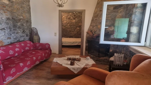 Αυτή η πέτρινη οικία βρίσκεται σε ένα ψηλό σημείο στο Τάρτι και έχει απέραντη θέα στη θάλασσα και στο βουνό. Διαθέτει κουζίνα, καθιστικό, ένα μπάνιο κι ένα υπνοδωμάτιο και υπάρχει ακόμα ένα κρεβάτι στο πατάρι. Στο οικόπεδο υπάρχει ρεύμα, γεώτρηση, και είναι προσβάσιμο από αμάξι.