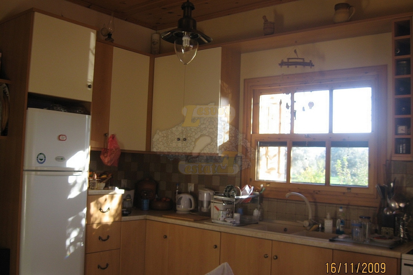 Ισόγειο->Ενιαίος χώρος με τζάκι, κουζίνα, 1 υ/δ μεγάλο, 1 μεγάλο μπάνιο με τζακούζι 1ος όροφος->Ενιαίος χώρος με τζάκι, τουαλέτα Στο οικόπεδο υπάρχουν 40 δέντρα ελιάς